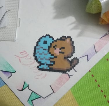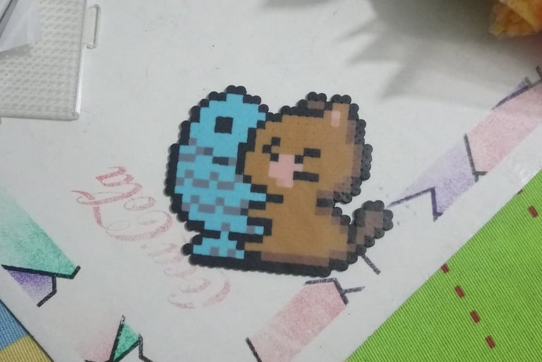 ✨ Y cuando me visita la inspiración (y no se me escapa corriendo), creo dijes, llaveros o pequeñas piezas hechas a mano con pixel art.